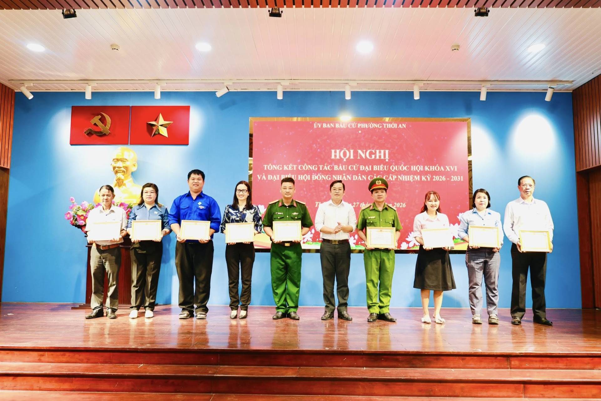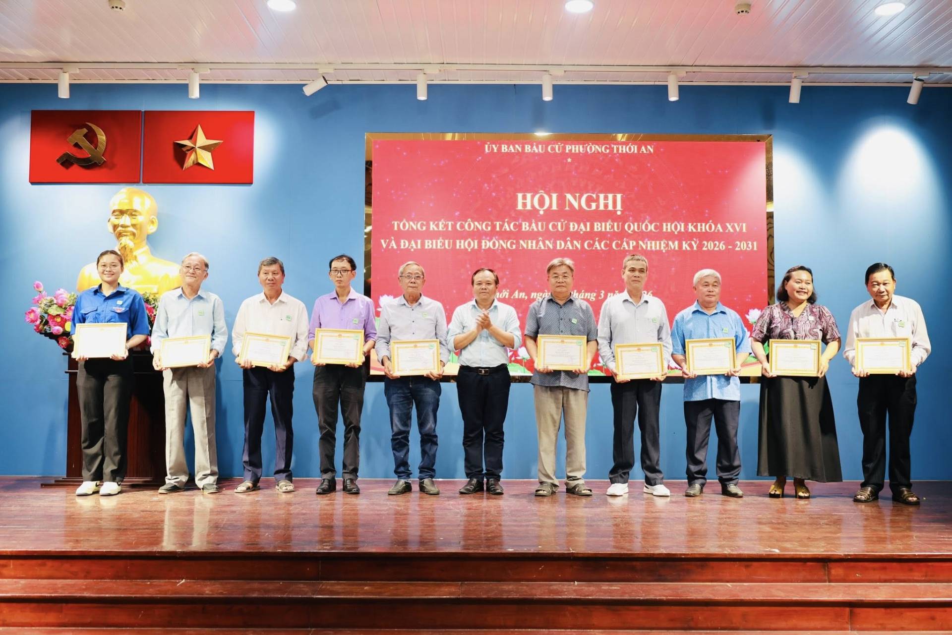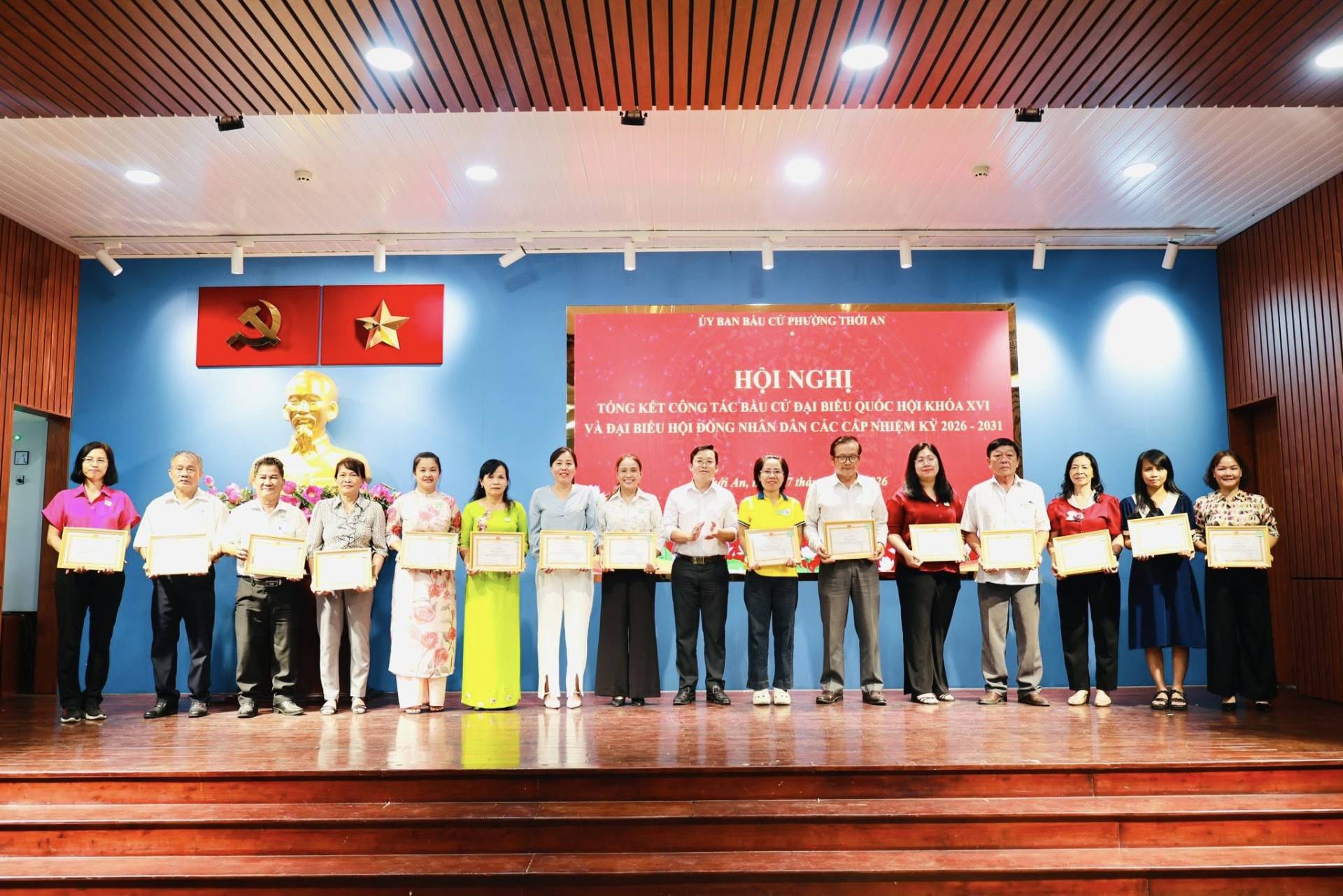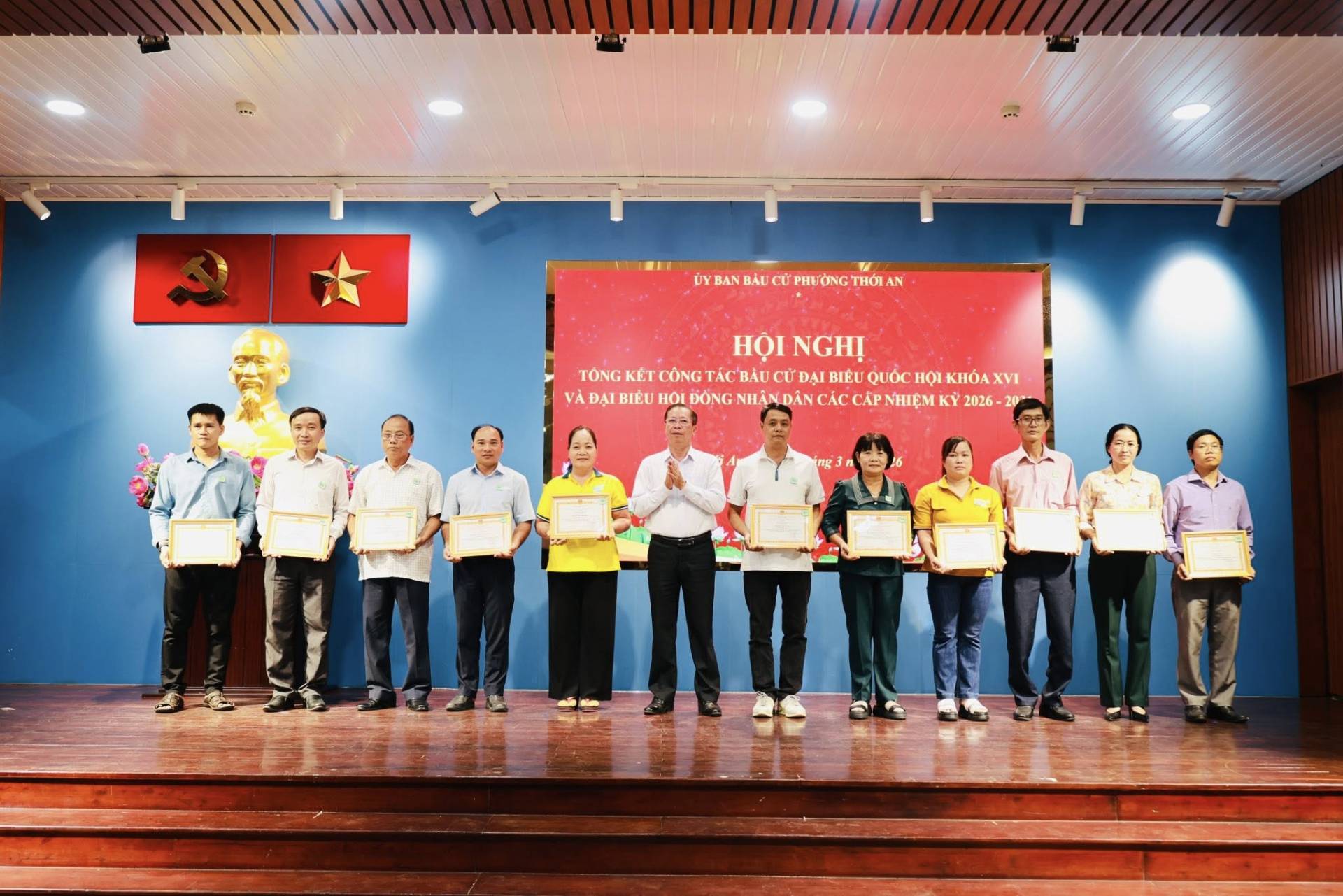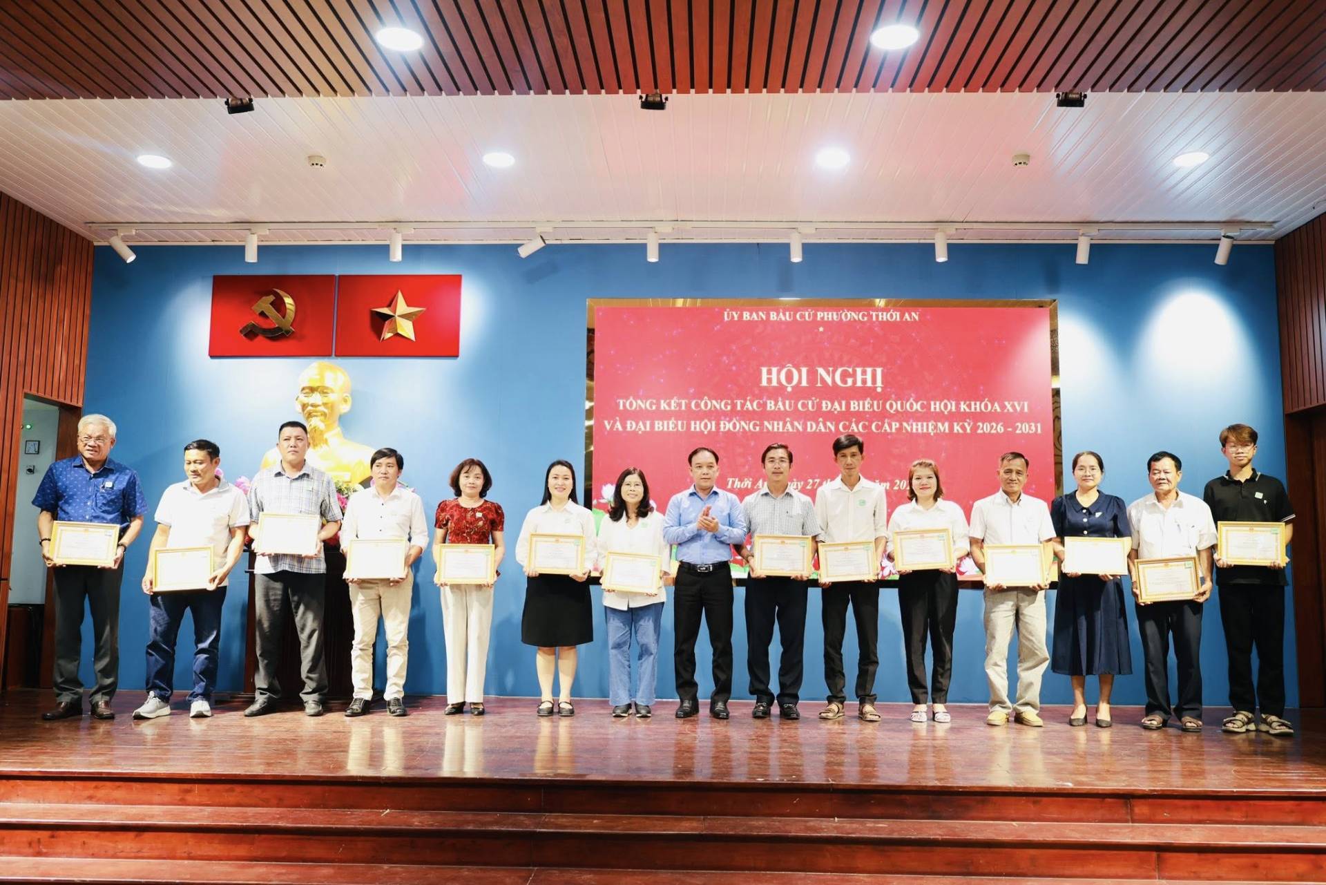 Dịp này, Ủy ban bầu cử phường Thới An đã trao Giấy khen cho 51 tập thể, 260 cá nhân có thành tích xuất sắc trong công tác bầu cử, góp phần vào thành công chung của cuộc bầu cử đại biểu Quốc hội khóa XVI và đại biểu Hội đồng nhân dân các cấp nhiệm kỳ 2026 – 2031.