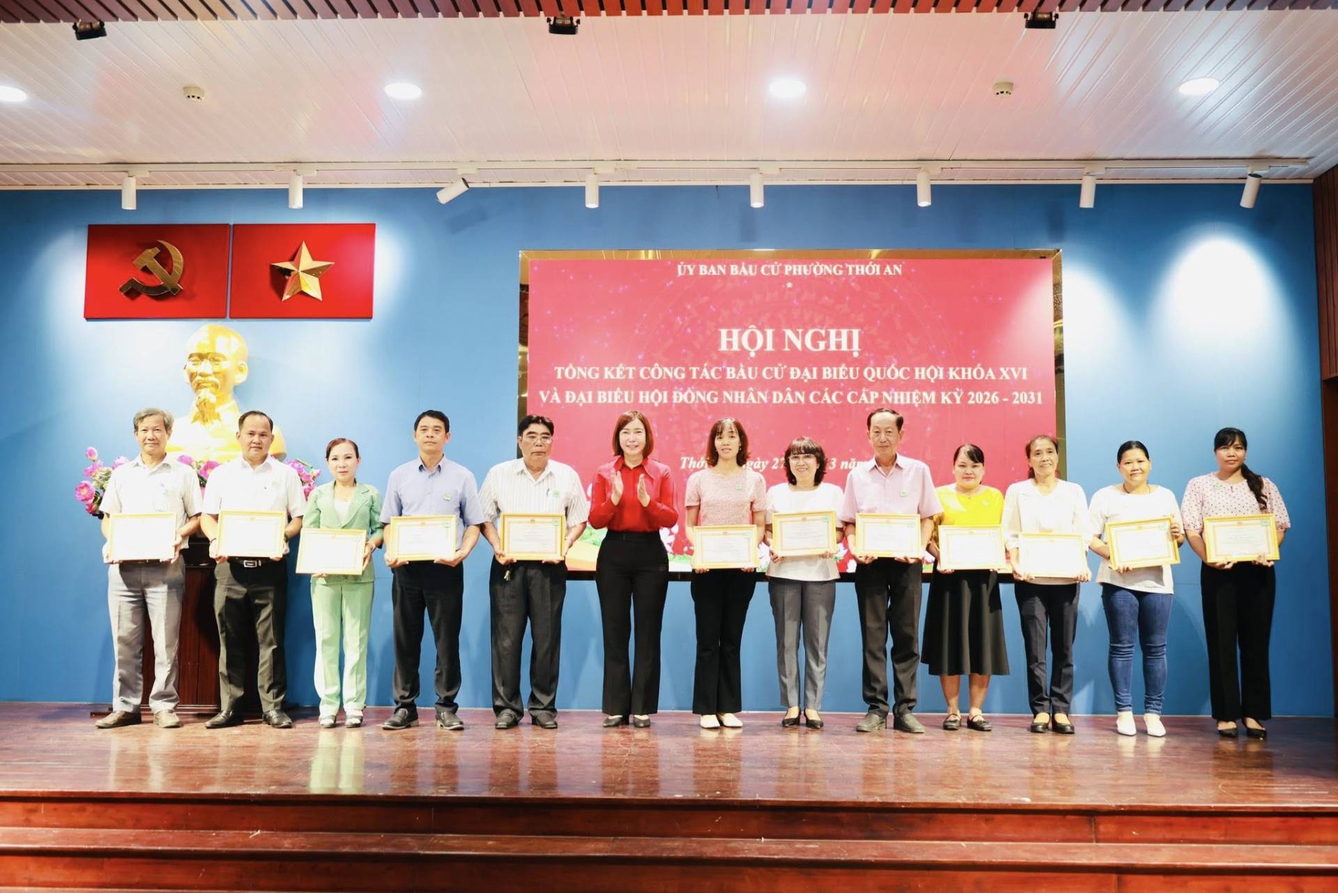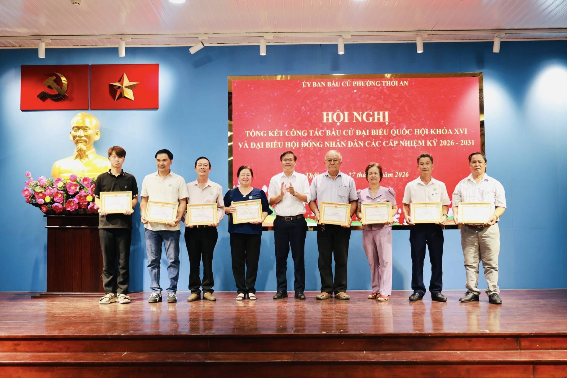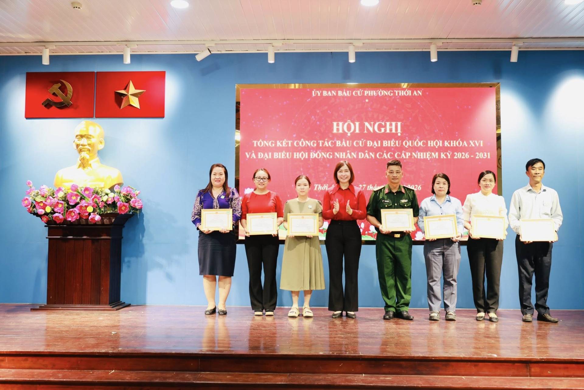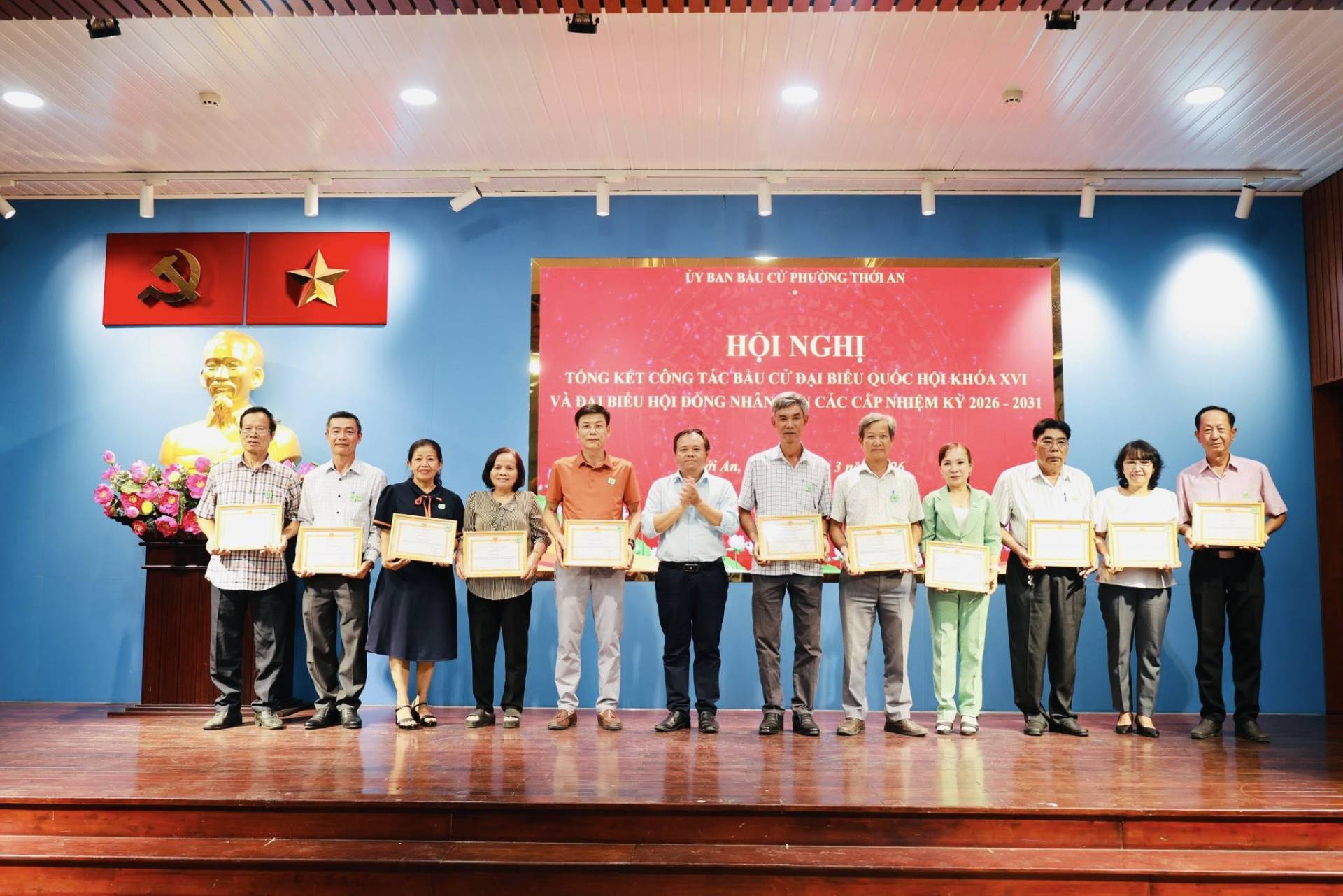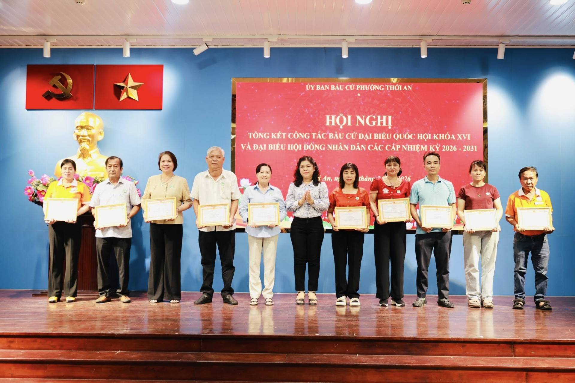 Dịp này, Ủy ban bầu cử phường Thới An đã trao Giấy khen cho 51 tập thể, 260 cá nhân có thành tích xuất sắc trong công tác bầu cử, góp phần vào thành công chung của cuộc bầu cử đại biểu Quốc hội khóa XVI và đại biểu Hội đồng nhân dân các cấp nhiệm kỳ 2026 – 2031.