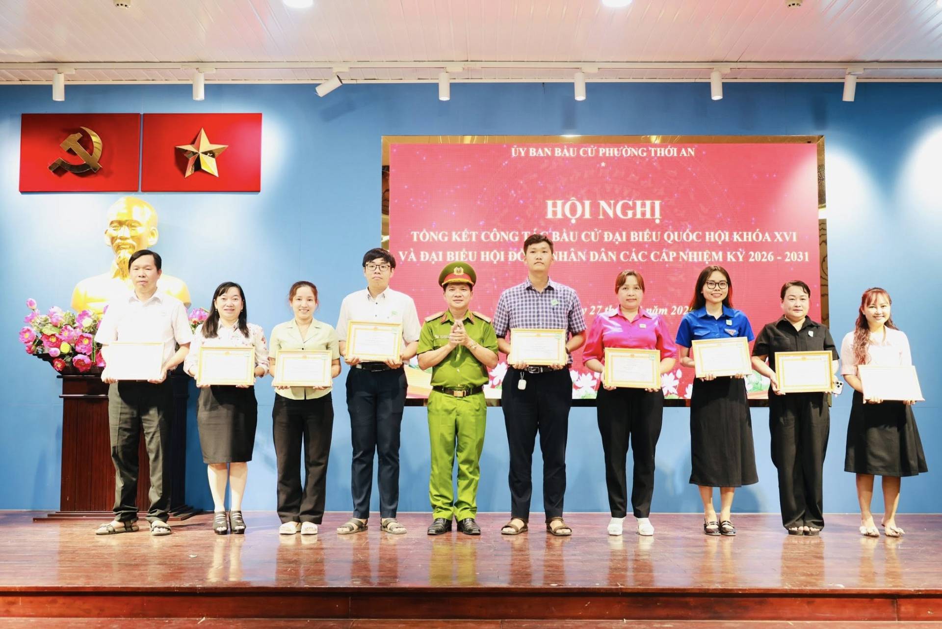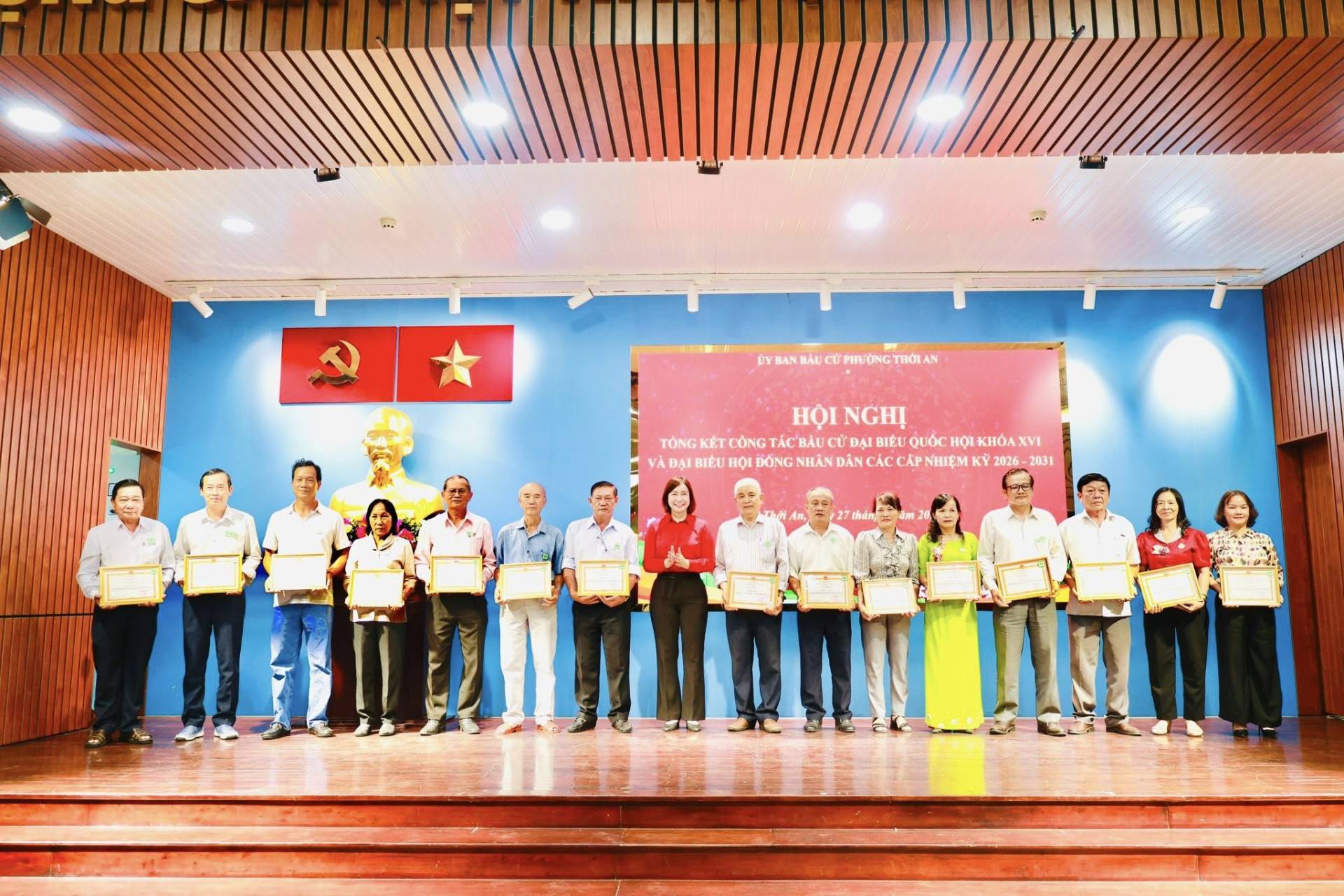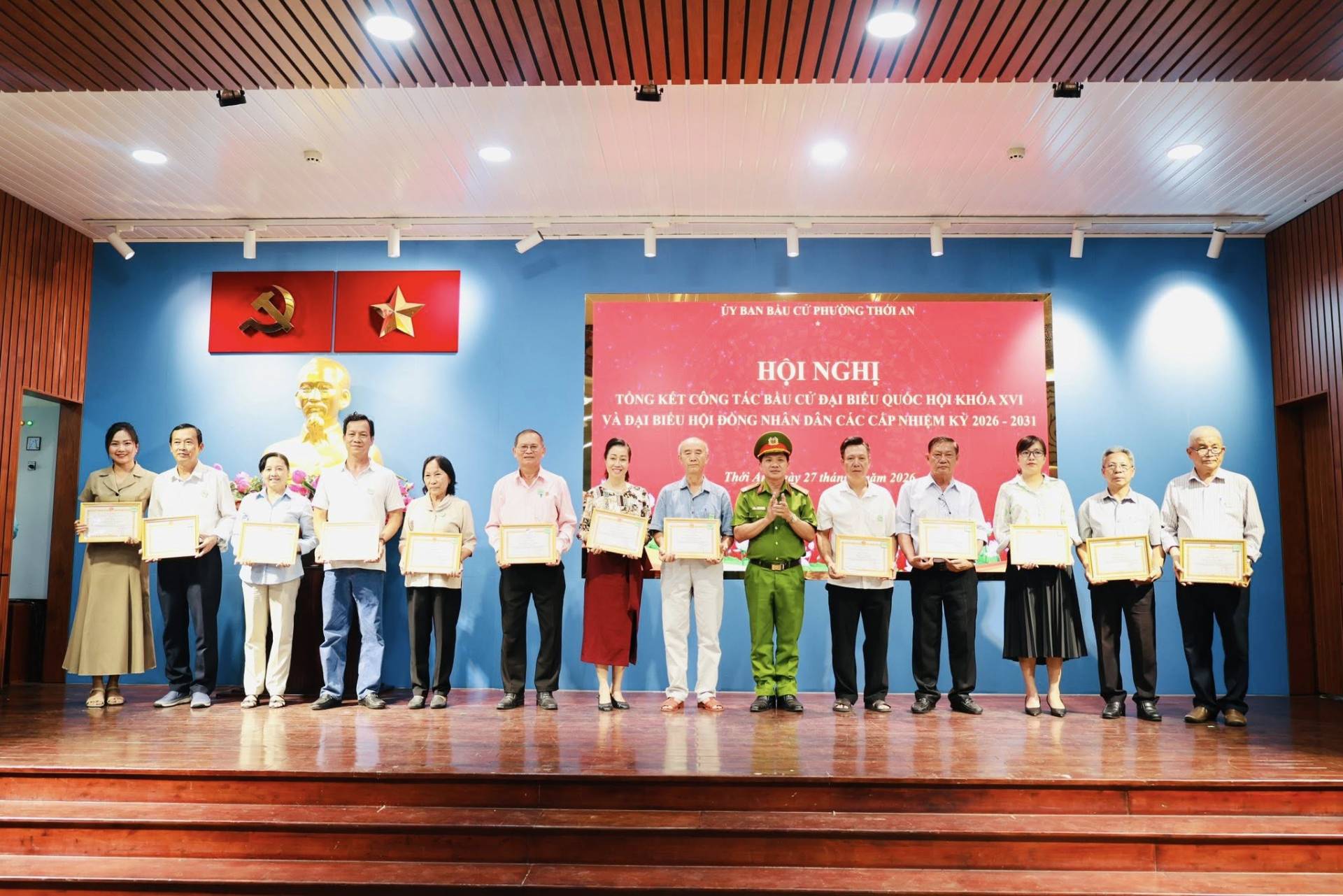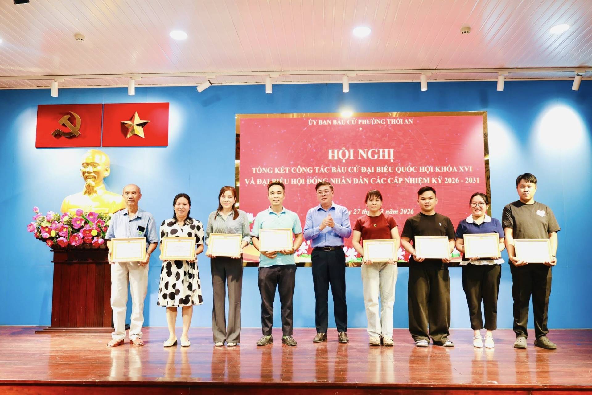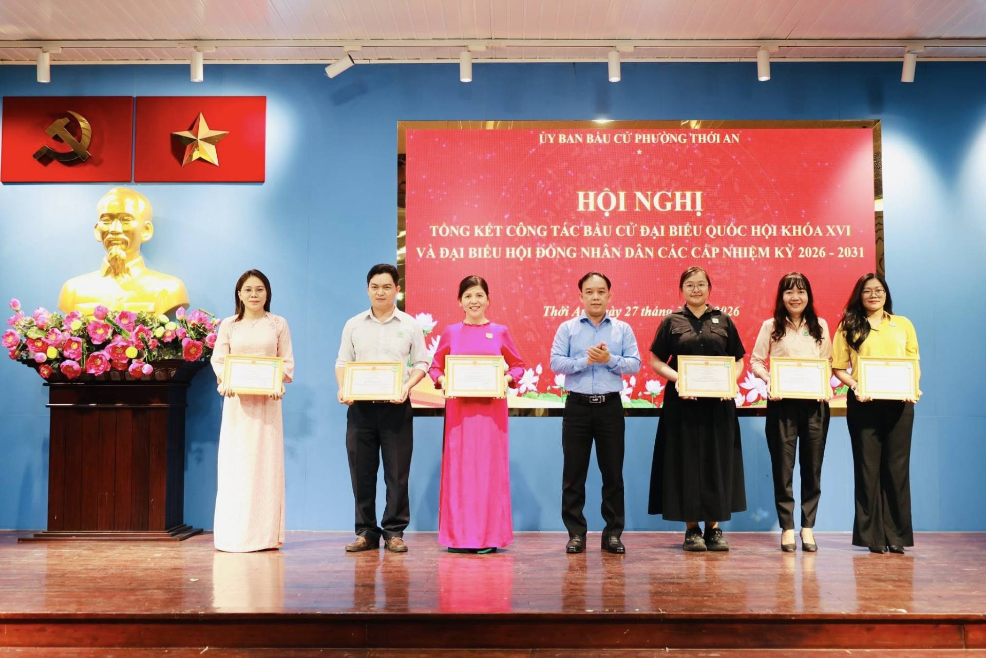 Dịp này, Ủy ban bầu cử phường Thới An đã trao Giấy khen cho 51 tập thể, 260 cá nhân có thành tích xuất sắc trong công tác bầu cử, góp phần vào thành công chung của cuộc bầu cử đại biểu Quốc hội khóa XVI và đại biểu Hội đồng nhân dân các cấp nhiệm kỳ 2026 – 2031.