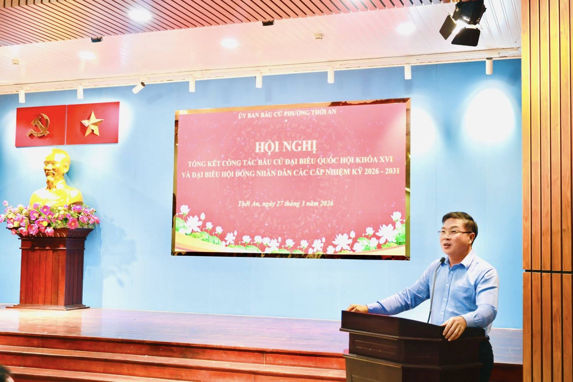 HỘI NGHỊ TỔNG KẾT CÔNG TÁC BẦU CỬ ĐẠI BIỂU QUỐC HỘI KHÓA XVI VÀ ĐẠI BIỂU HỘI ĐỒNG NHÂN DÂN CÁC CẤP NHIỆM KỲ 2026 - 2031 TẠI PHƯỜNG THỚI AN