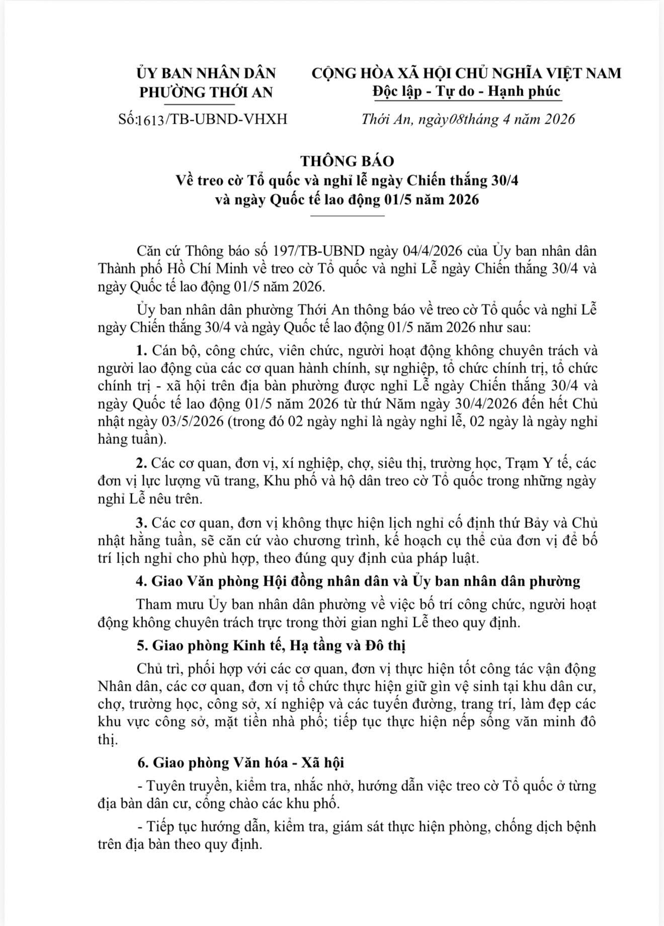 📣📣 THÔNG BÁO NGHỈ LỄ VÀ TREO CỜ TỔ QUỐC NHÂN NGÀY GIỖ TỔ HÙNG VƯƠNG; NGÀY CHIẾN THẮNG 30/4 VÀ NGÀY QUỐC TẾ LAO ĐỘNG 01/5 NĂM 2026🌟🌟