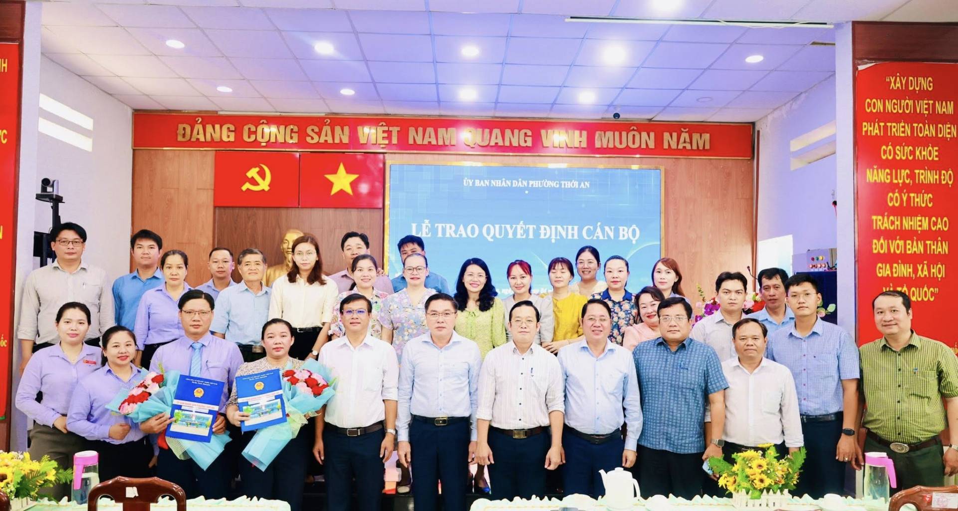 Tại buổi lễ, Ủy ban nhân dân phường Thới An trao Quyết định Giám đốc Trung tâm Phục vụ hành chính công cho đồng chí Hứa Kim Thủy. Trao Quyết định Phó Trưởng phòng Kinh tế, Hạ tầng và Đô thị cho đồng chí Huỳnh Tấn Minh.