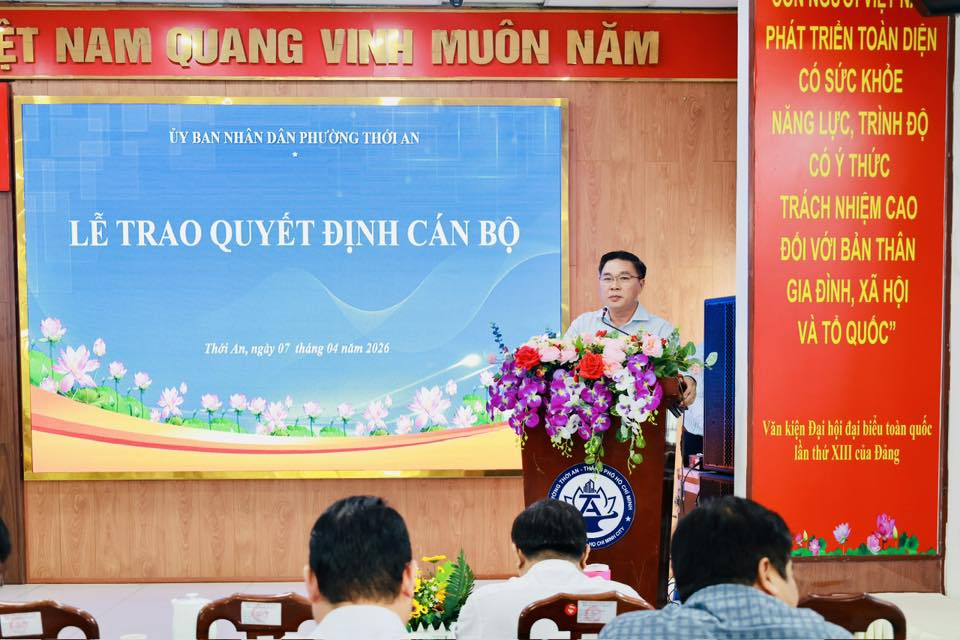 Sáng ngày 07/4/2026 tại Hội trường phường, Đảng ủy – Ủy ban nhân dân phường Thới An tổ chức Lễ trao quyết định cán bộ.