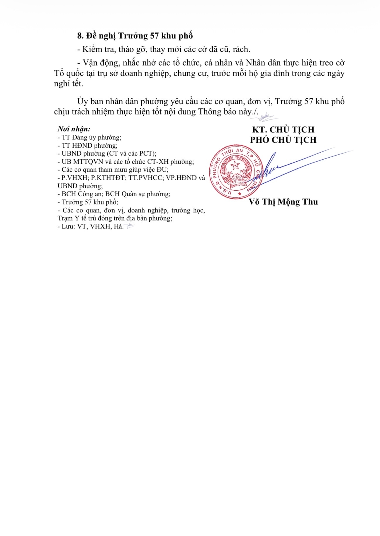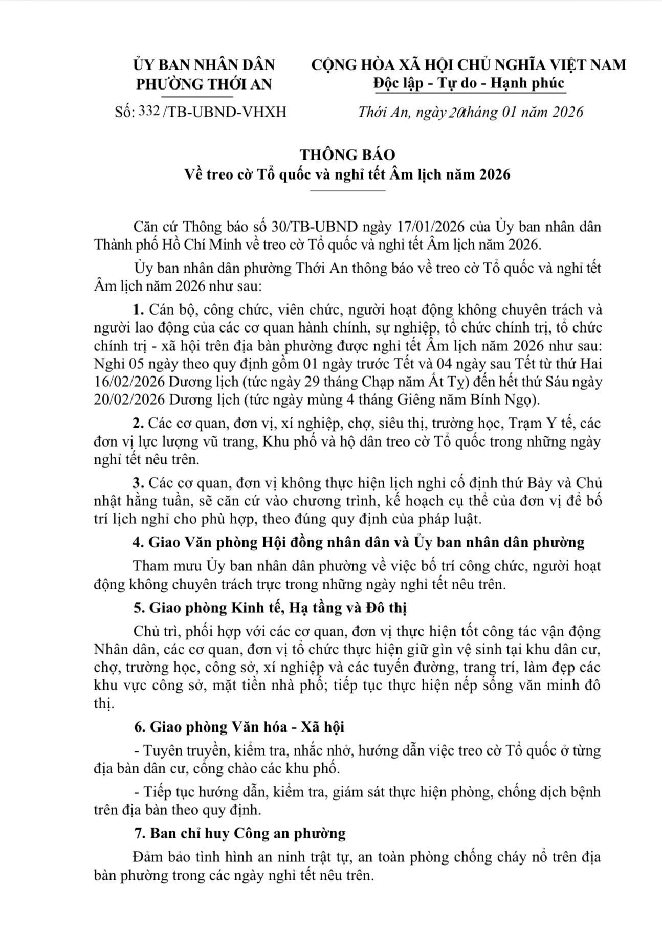 ỦY BAN NHÂN DÂN PHƯỜNG THỚI AN THÔNG BÁO VỀ TREO CỜ TỔ QUỐC VÀ NGHỈ TẾT ÂM LỊCH NĂM 2026